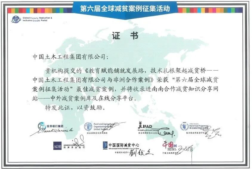 中國土木獲評“第六屆全球減貧案例征集活動優秀案例”